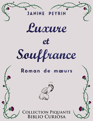 Janine Peyrin, Luxure et souffrance, (édition clandestine, v.1950). Édition ornée d'une vignette en couverture, de huit illustrations en noir et de quelques vignettes en culs-de-lampe d'un artiste anonyme. Présentation, notes et texte établi par Nathalie Quirion.