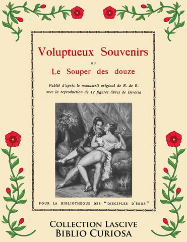 R. de B., Voluptueux souvenirs ou Le Souper des douze, (éd. Pour la bibliothèque des "Disciples d'Éros" [Maurice Duflou], 1927). Édition ornée de douze superbes illustrations en noir de Achille Devéria. Présentation et texte établi par Nathalie Quirion.