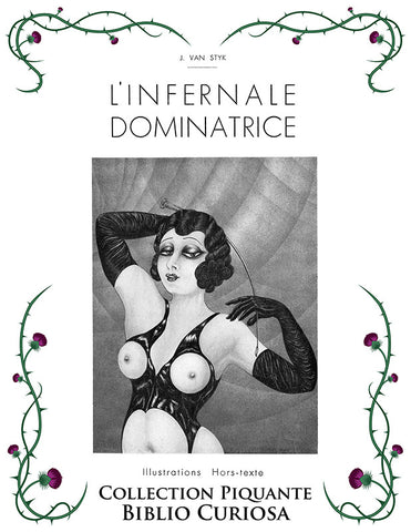 J. Van Styk, L'Infernale dominatrice, (Le Jardin d'Eros, 1935). Édition ornée d'une couverture illustrée et de douze illustrations en noir d'un artiste anonyme. Présentation, notes et texte établi par Nathalie Quirion.